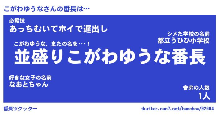 | 恥ずかしいあだ名 | 『プリティーこがわゆうな』『こがっちょ』 |