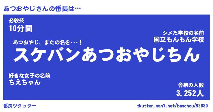 | ヒーロー風カッコイイあだ名 | 『スーパーアツオヤジ』『幻影騎士アツ』 |