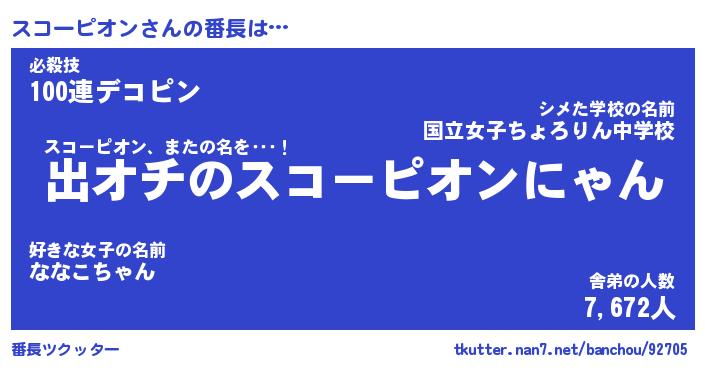 | 男性向けラノベタイトル風あだ名 | 『スコーピオンの憂鬱』 |