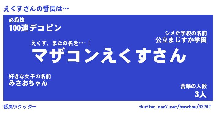 | ヘコむあだ名 | 『えくにゅー』『つくし』『えくっぺ』 |