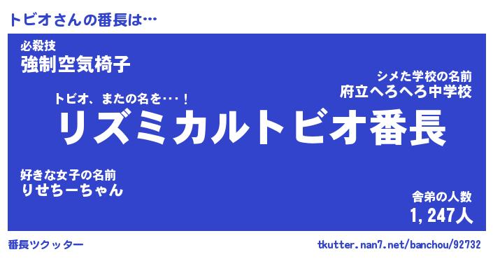 | ポケモン風あだ名 | 『トビチュウ』『トビオダネ』 |