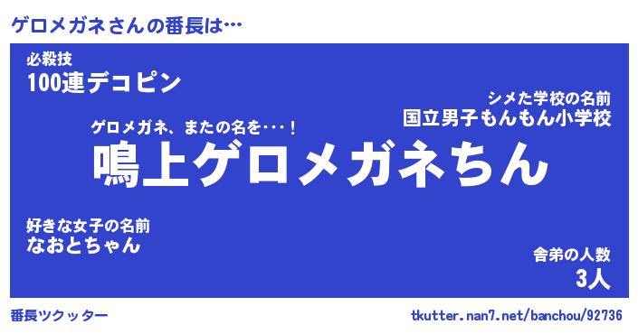 | 2回繰り返すあだ名 | 『ゲロゲロ』『ゲゲロロ』『おらおら』 |