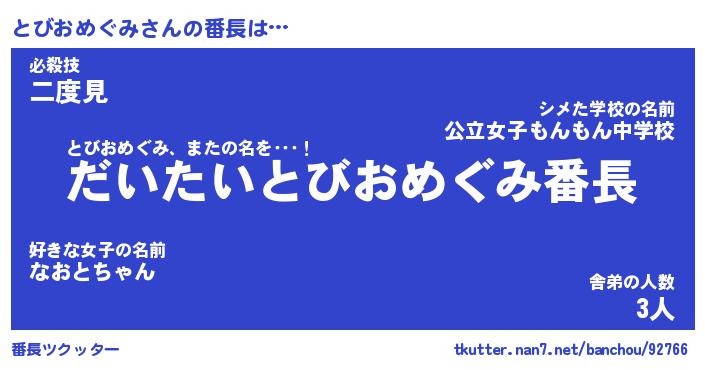 | 肩書あだ名 | 『とびおめぐみCEO』『とびおめぐみ大統領』 |