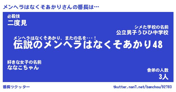| 2回繰り返すあだ名 | 『メンメン』『メメンン』『ねちねち』 |