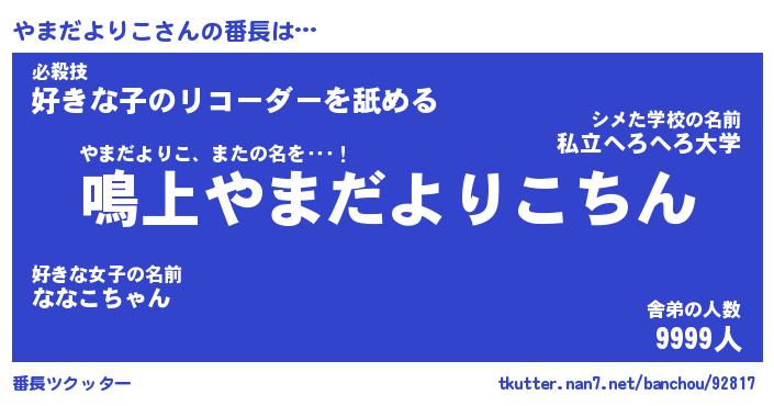 | 肩書あだ名 | 『やまだよりこ御曹司』 |