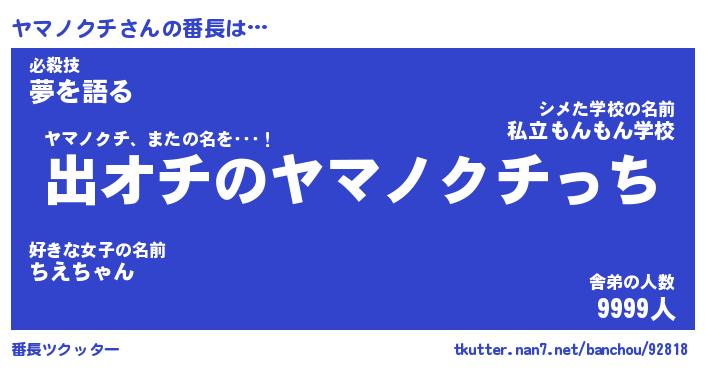 | ヒーロー風カッコイイあだ名 | 『スーパーヤマノクチ』『魔戒騎士ヤマ』 |