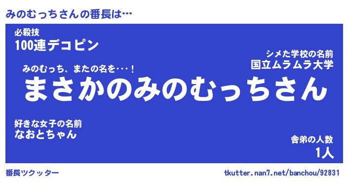 | 伝説のあだ名 | 『伝説のスナイパーみのむっち』 |
