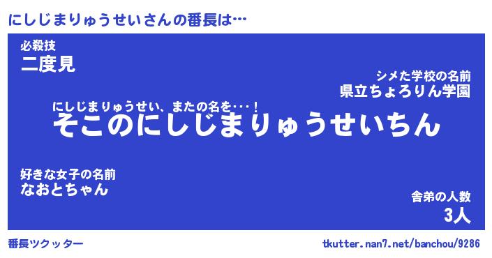 | 肩書あだ名 | 『にしじまりゅうせい御曹司』 |
