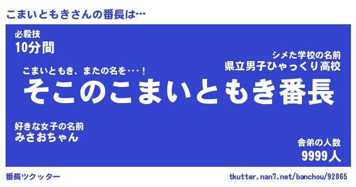 | ヒーロー風カッコイイあだ名 | 『スーパーコマイトモキ』『天弓騎士コマ』 |