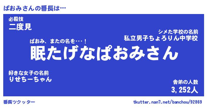 | 肩書あだ名 | 『ぱおみ御曹司』『ぱおみ国家主席』 |