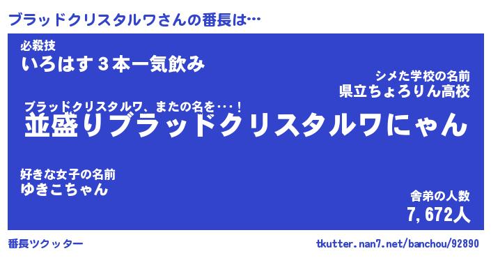 | 男性向けラノベタイトル風あだ名 | 『ブラッドクリスタルワの憂鬱』 |