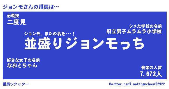 | ヒーロー風カッコイイあだ名 | 『スーパージョンモ』『魔戒騎士ジョ』 |