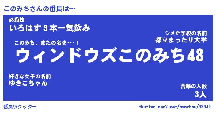 | ヒーロー風カッコイイあだ名 | 『スーパーコノミチ』『幻影騎士コノ』 |