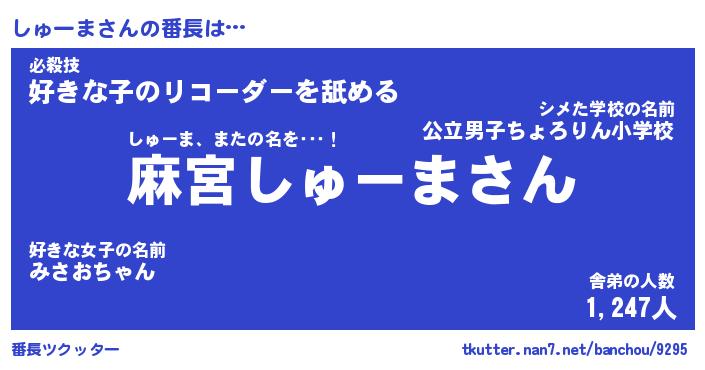 | 肩書あだ名 | 『しゅーま店長』『しゅーま総理大臣』 |