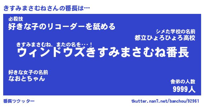 | 肩書あだ名 | 『きすみまさむね御曹司』 |