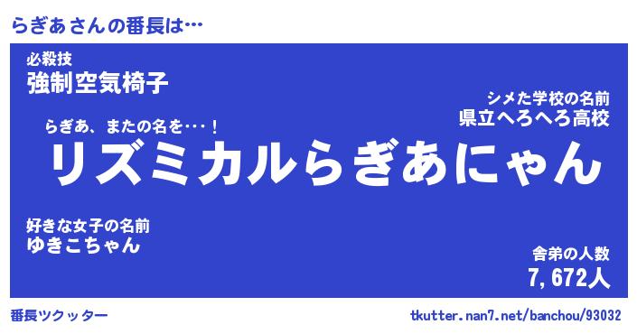 | ヘコむあだ名 | 『らぎふぇ~』『牛乳』『らぎ太郎』 |