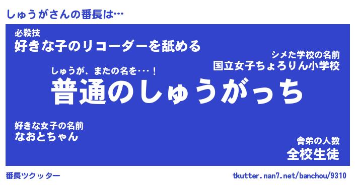 | 欧米人風あだ名 | 『マイケルしゅうが』『ウサインしゅうが』 |