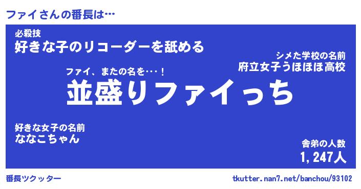 | 2回繰り返すあだ名 | 『ファファ』『フファァ』『ねちねち』 |