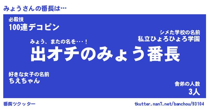 | 伝説のあだ名 | 『伝説のスナイパーみょう』 |