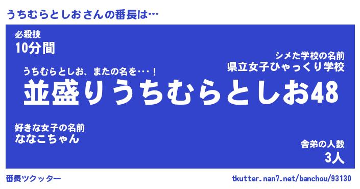 | 伝説のあだ名 | 『不死鳥のスナイパーうちむらとしお』 |