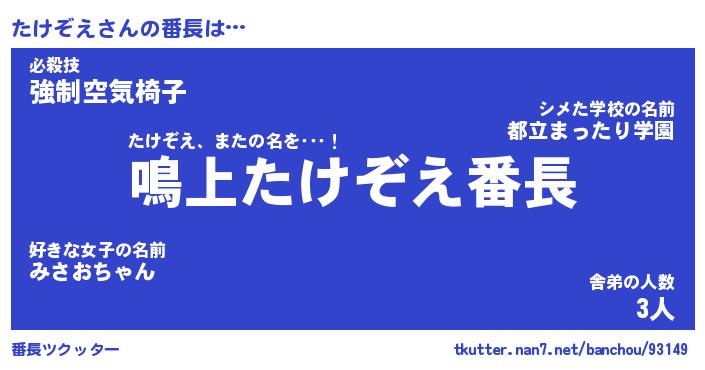 | 肩書あだ名 | 『たけぞえ店長』『たけぞえ総理大臣』 |