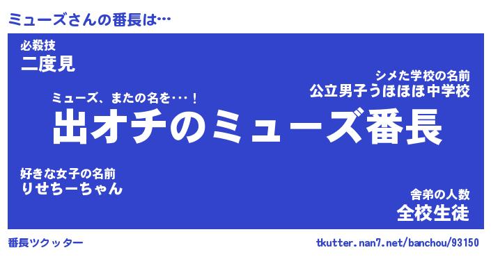| ファンタジー風あだ名 | 『ミュフェル』『エターナルミューズー』 |