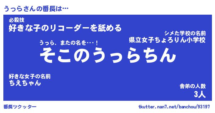 | ヒーロー風カッコイイあだ名 | 『スーパーウッラ』『ウルトラうっらマン』 |