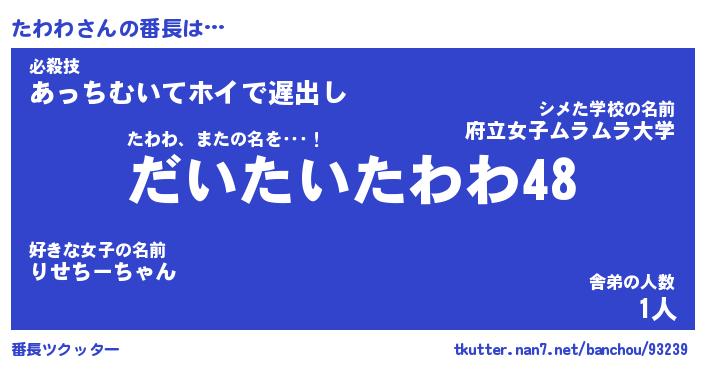 | ヒーロー風カッコイイあだ名 | 『スーパータワワ』『ウルトラたわわマン』 |