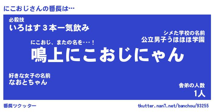 | 意味不明あだ名 | 『ペロリンにこおじ』『永久保存にこおじ』 |