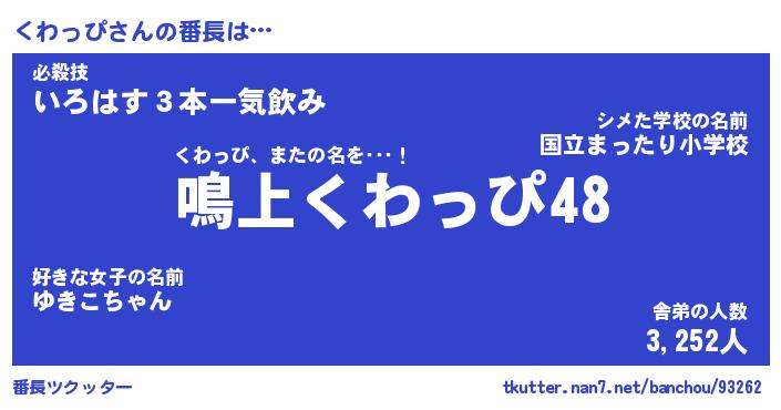 | 伝説のあだ名 | 『封印されしスナイパーくわっぴ』 |