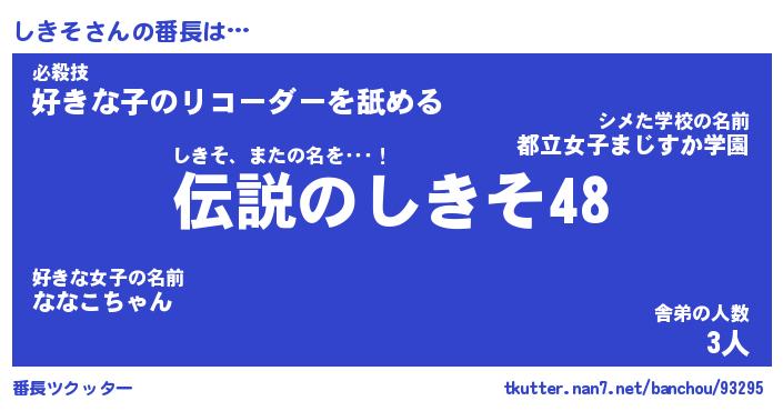 | 伝説のあだ名 | 『伝説のスナイパーしきそ』 |