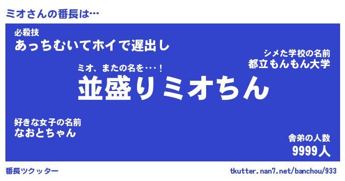 | ヘコむあだ名 | 『ミオふぇ~』『牛乳』『ミオを』 |