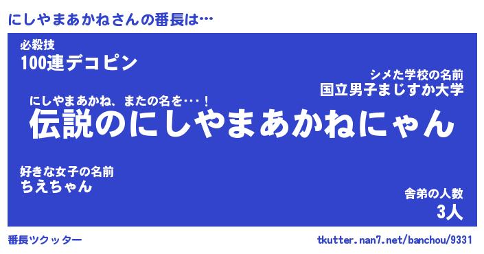 | ポケモン風あだ名 | 『ニシチュウ』『ニシヤダネ』 |
