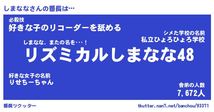 | 意味不明あだ名 | 『ペロリンしまなな』『永久保存しまなな』 |