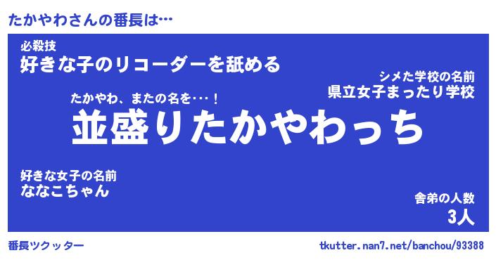 | 意味不明あだ名 | 『ペロリンたかやわ』『永久保存たかやわ』 |