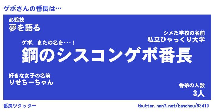| 伝説のあだ名 | 『封印されしスナイパーゲボ』 |