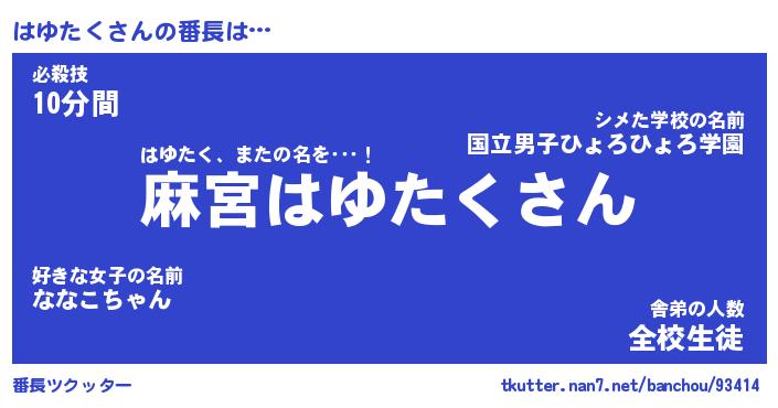 | 欧米人風あだ名 | 『マイケルはゆたく』『ウサインはゆたく』 |