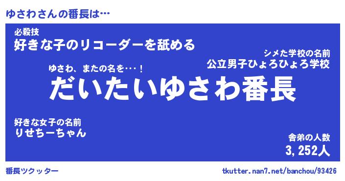 | 2回繰り返すあだ名 | 『ゆさゆさ』『ゆゆささ』『ねちねち』 |