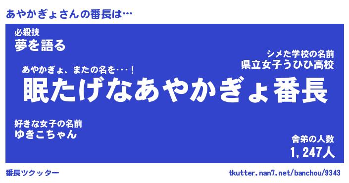 | ヒーロー風カッコイイあだ名 | 『スーパーアヤカギョ』『銀牙騎士アヤ』 |