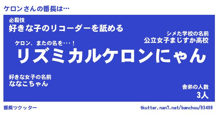 | ヘコむあだ名 | 『ケロふぇ~』『なまこ酢』『ケロを』 |