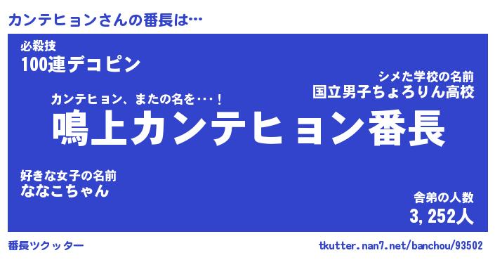 | ピコ太郎風あだ名 | 『カコ二郎』『ピカ五郎』『カン三郎』 |