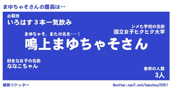 | ピコ太郎風あだ名 | 『マコ次郎』『ピマ史郎』『マユ一郎』 |