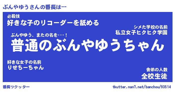 | ファンタジー風あだ名 | 『ブンフェル』『エターナルブンヤユウー』 |