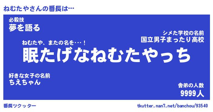 | 肩書あだ名 | 『ねむたや社長』『ねむたや総理大臣』 |