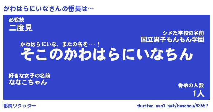 | ヒーロー風カッコイイあだ名 | 『スーパーカワハラニイナ』 |