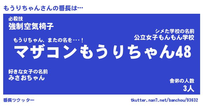 | ポケモン風あだ名 | 『モウチュウ』『モウリダネ』 |