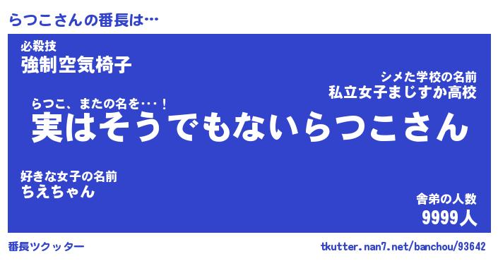 | ヒーロー風カッコイイあだ名 | 『スーパーラツコ』『ウルトラらつこマン』 |