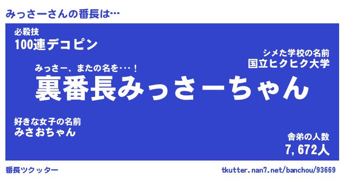 | 伝説のあだ名 | 『不死鳥のスナイパーみっさー』 |