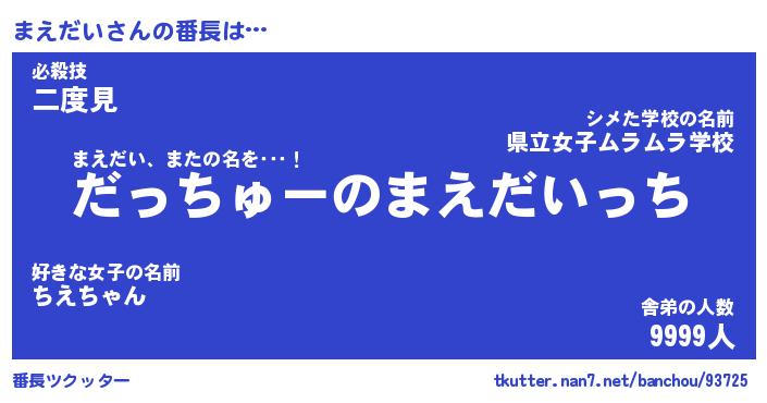 | 意味不明あだ名 | 『ペロリンまえだい』『永久保存まえだい』 |