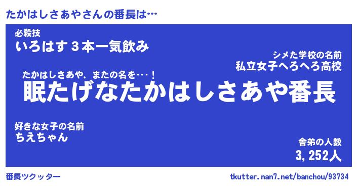| 肩書あだ名 | 『たかはしさあや社長令嬢』 |